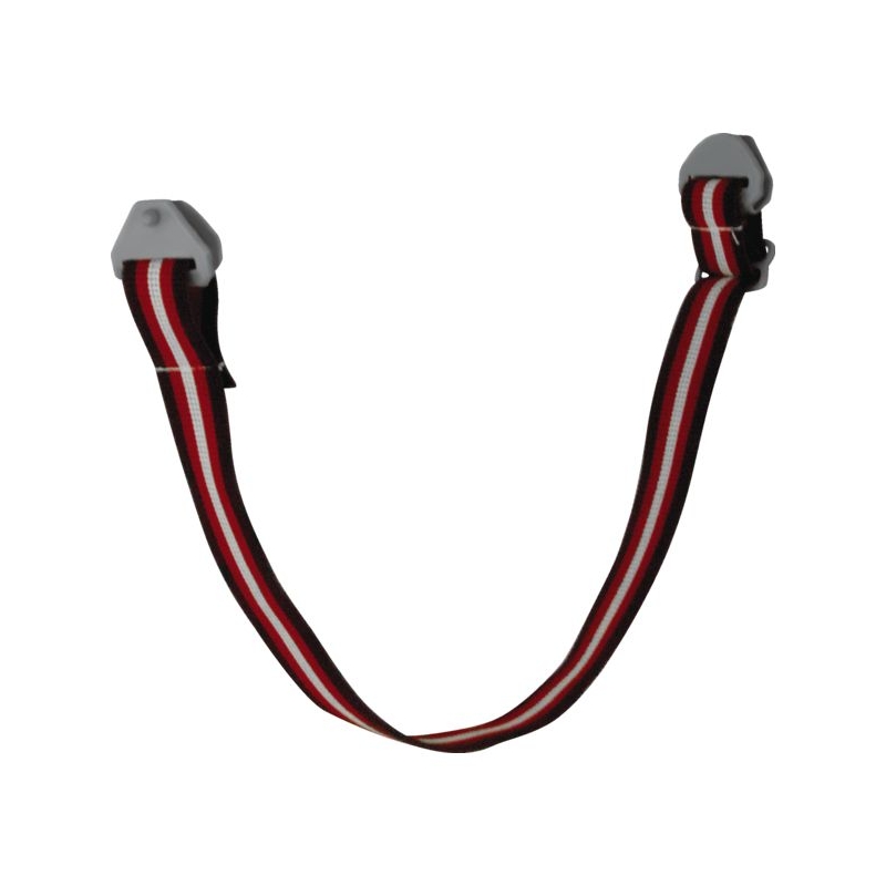 En nylon et élastique. Réglable, adaptable sur les casques 19865. 2 points d'ancrage latéraux, fermeture et ouverture rapide par boucle.