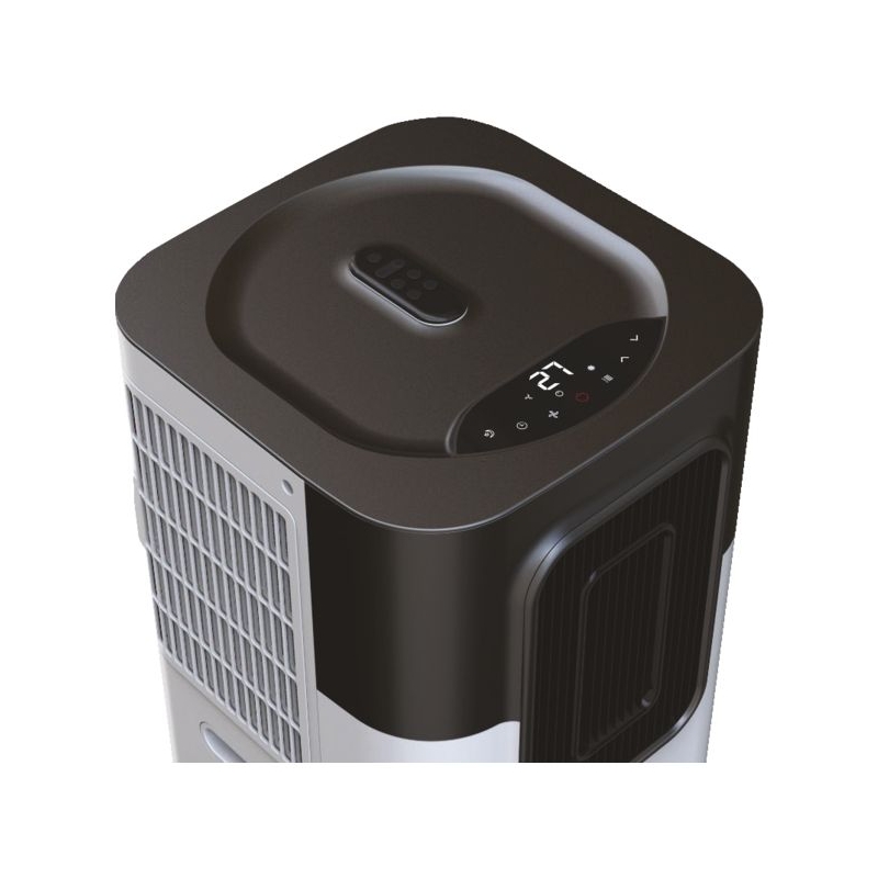 Rafraîchi les locaux fermés par à un système frigorigène. Évacuation de l’air chaud par gaine flexible. Recyclage automatique des condensats (pas d'évacuation d'eau). 2 vitesses de ventilation et fonction ventilation seule. Thermostat électronique, écran LCD. Alimentation : 230 V Gaz réfrigérant : R290A Niveau sonore : 55 dBa Gaine flexible de 1,5 m et télécommande inclus.