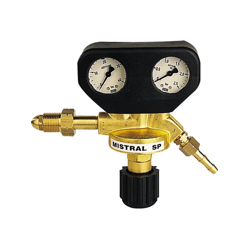 Manodétendeur robuste en laiton pour réaliser tous travaux de soudage, chauffage, formage et d'oxycoupage. Manomètres protégés par une bonnette enveloppante autoextinguibles. Douille en laiton pour tuyau Ø10 x 17. Manomètre : Ø 50 mm Suivant norme NF-EN ISO 2503 - Classe 0 à 5.