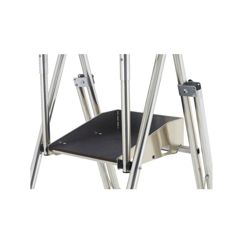 Utilisation sur sol plat. Usage intensif. En aluminium. Garde-corps fixe 360° avec portillon semi-automatique rigide. Plate-forme 400 x 490 mm avec plinthes intégrées. Marches striées antidérapantes de 60 mm. Tablette porte-outils. 2 roulettes Ø 100 mm pour les déplacements. Béquille arrière adaptée pour le passage des WC (sauf modèle 2 marches). Modèles 4 et 5 marches avec stabilisateurs. Charge maxi. : 150 kg Norme : PIRL NFP 93353 - Décret 2004.924