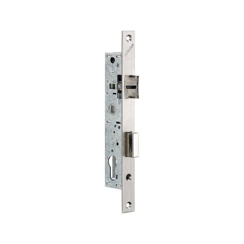 Pêne ½ tour réglable. Rappel du ½ tour à la clé. Pour coffres en largeur 21 et 28 mm, prévoir cylindre panneton réduit DIN. Gâche à commander séparément, code 52236. Dimensions coffre : 180 x 15 mm Saillie du pêne dormant : 14.5 mm Saillie du pêne ½ tour : 12 mm Têtière plate en inox : 240 x 22 mm Épaisseur : 2.5 mm Entraxe : 70 mm Fouillot carré : 8 mm Conditionnement : boite